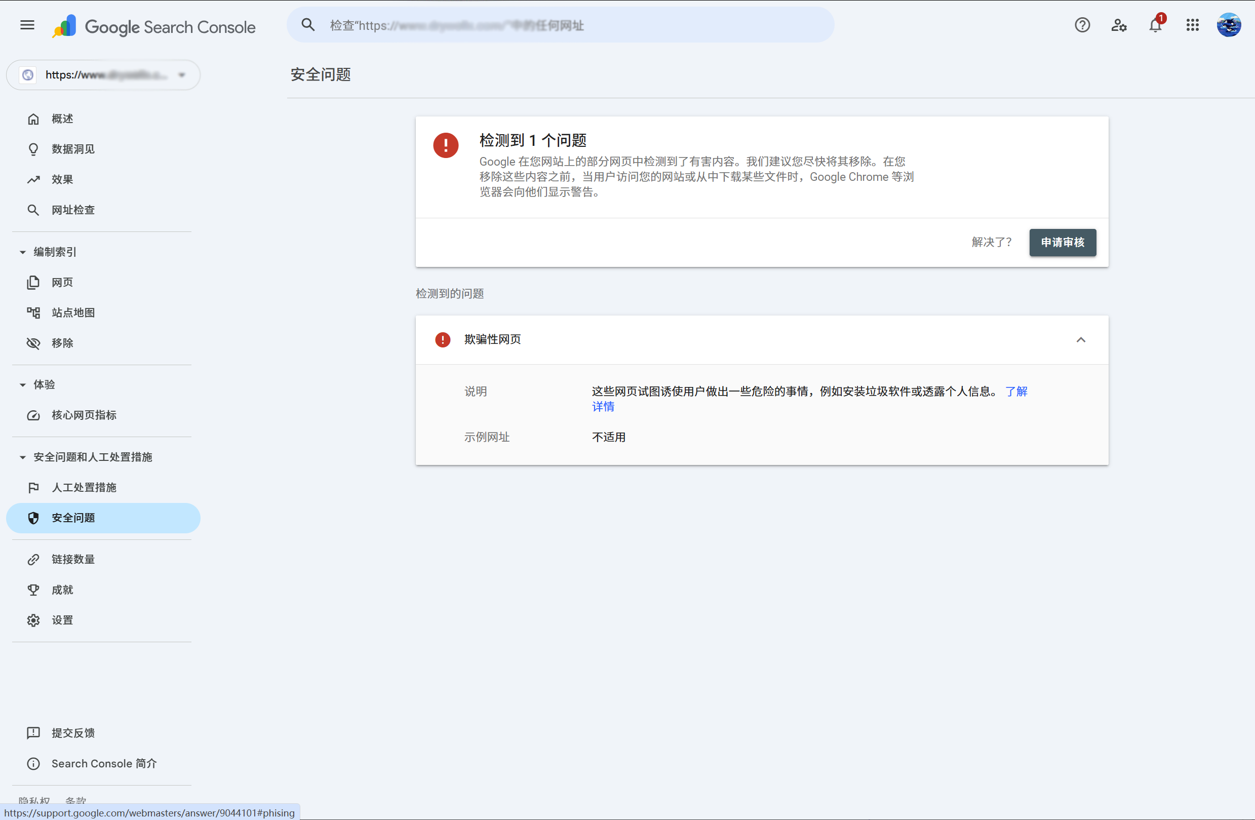 可以直接在 Google Search Console 的“安全问题”页面,点击“申请审核” (Request a review),并简要说明我们已经采取了哪些清理措施。Google 审核通过后,红色的警告页面就会被解除。